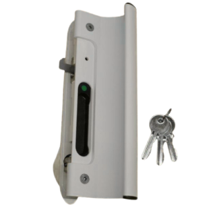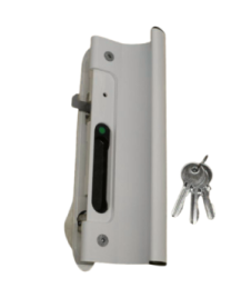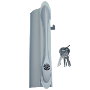 Poignée à clefs BLANCHE avec cylindre pour bloc serrure coulissant Kawneer Kasting ou Kawneer Speci\'AL K.