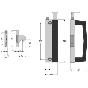 Serrure de remplacement pour les Technal GK/GKI. La SRS2941 comprend: - Deux platines. - Poignée coquille extérieure. - Coquille de manoeuvre intérieure. - Crochet. - Visserie.