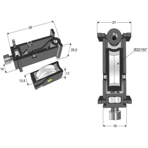 Chariot simple réglable avec galet en polyamide.Réédition d\'anciens modèles.