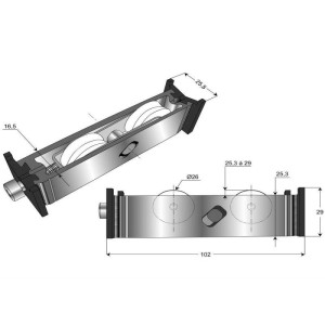 Vous trouverez fréquemment des chariots d’origine à simples galets réglables et/ou non-réglables, ceux-ci pouvant être remplacés par des doubles réglables pour une plus grande durabilité et résistance de votre coulissant.
