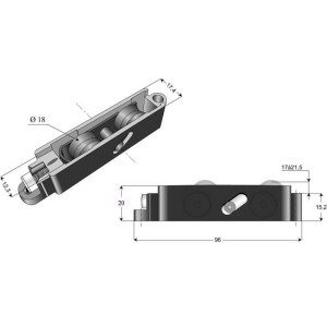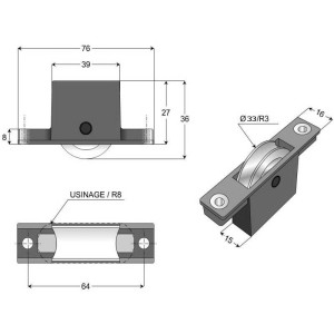 Ce modèle de chariot est souvent installé en version simple galet sur les coulissants de marque AKENA ou METALCHIMEX :