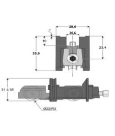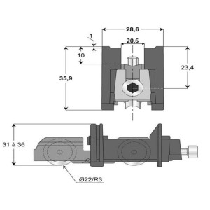Le chariot réglable permettant de redonner un aplomb et de corriger les défauts d’équerrage de votre coulissant.