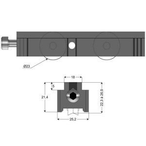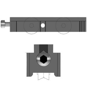 Le chariot réglable permettant de redonner un aplomb et de corriger les défauts d’équerrage de votre coulissant.