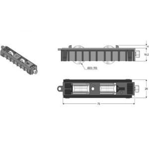 Vous trouverez fréquemment des chariots d’origine à simples galets réglables et/ou non-réglables, ceux-ci pouvant être remplacés par des doubles réglables pour une plus grande durabilité et résistance de votre coulissant.