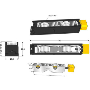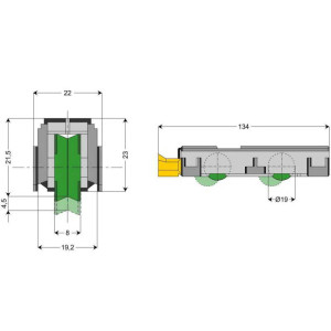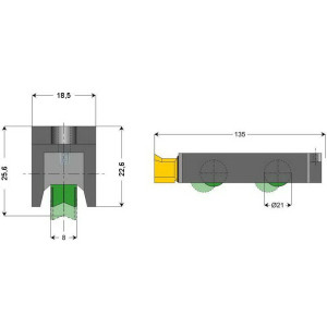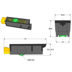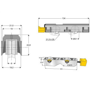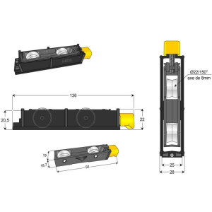 Cage intérieure réglable double galets pour chariot coulissant GIESSE