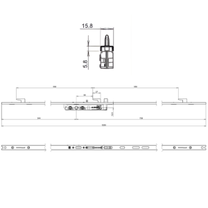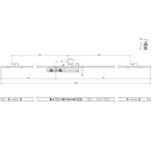 Crémone 3 points monobloc SERINOX 8406-R6 longueur 955 mm pour baie coulissante ALU et PVC