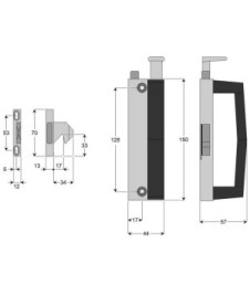 Serrure coquille double à clé avec poignée fermée CDS GRIS.