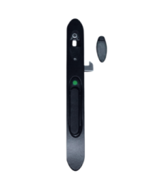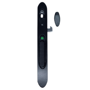 Serrure coquille simple NOIR. Coquille de man?uvre intérieure style 1/2 lune. Ce modèle est posé sur les coulissants SBLYEERT.