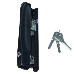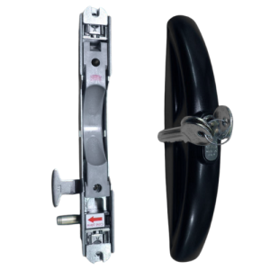 Poignée fermée intérieure noire, elle se monte sur le bloc serrure 241064 : cliquez ici