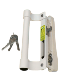 Poignée fermée intérieure blanche, elle se monte sur le bloc serrure 241064 : cliquez ici