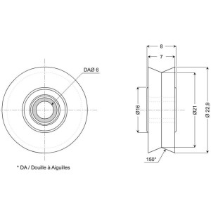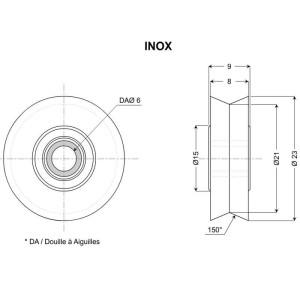 Galet 150° en polyamide ou inox selon modèles, pour chariot simple ou double. Ils sont équipés avec des douilles à aiguilles pour supporter des charges allant jusqu'à 45 Kg.