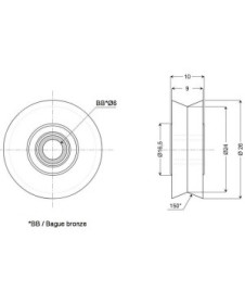 Galet en polyamide sans douille à aiguilles ou roulement.
