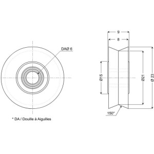 Galet en polyamide 150° monté avec une douille à aiguilles.