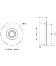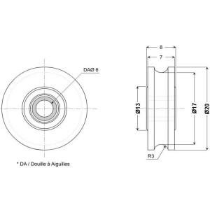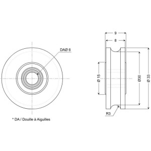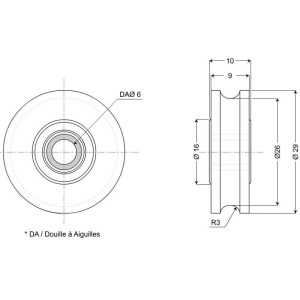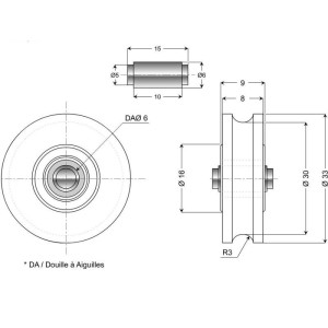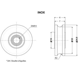 Galet R3 en polyamide ou inox selon modèles, pour chariot simple ou double. Ils sont équipés avec des douilles à aiguilles pour supporter des charges allant jusqu'à 45 Kg.