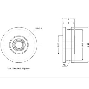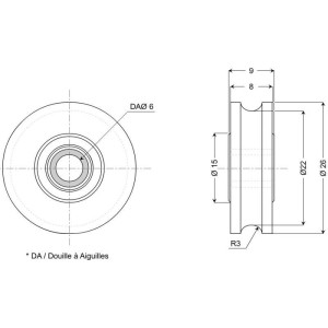 Galet en polyamide monté avec une douille à aiguilles. 44012DA-3808A.
