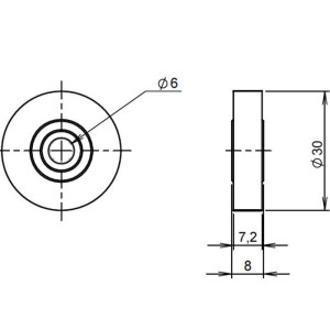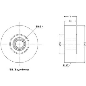 Galet en polyamide monté avec une bague en bronze.