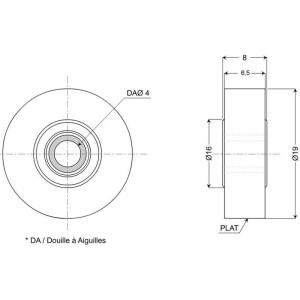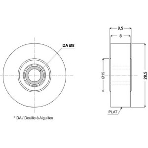 Galet en polyamide monté avec une douille à aiguilles.