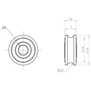 Galet R2.2 en polyamide ou inox selon modèles, pour chariot simple ou double. Ils sont équipés avec des douilles à aiguilles pour supporter des charges allant jusqu'à 45 Kg.