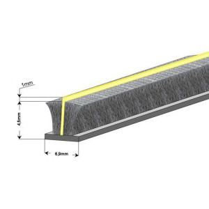 Le joint brosse avec film dépassant super fine possède une double barrière plastique centrale dépassant la hauteur des poils.