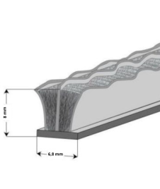 Grâces aux murs latéraux, le poil se maintient droit même pour les grandes hauteurs, réduisant ainsi l'effet de volume du joint brosse.