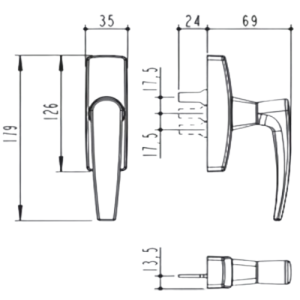 Poignée 1 fourche KAWNEER gamme Karaïbe