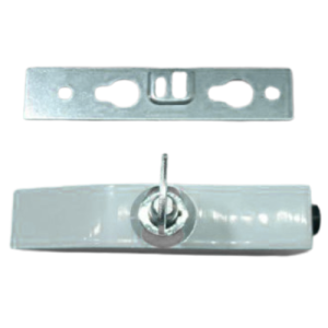Verrou de condamnation à clef et cale de fixation excentrée pour profil plat CDS pour baie coulissante BLANC
